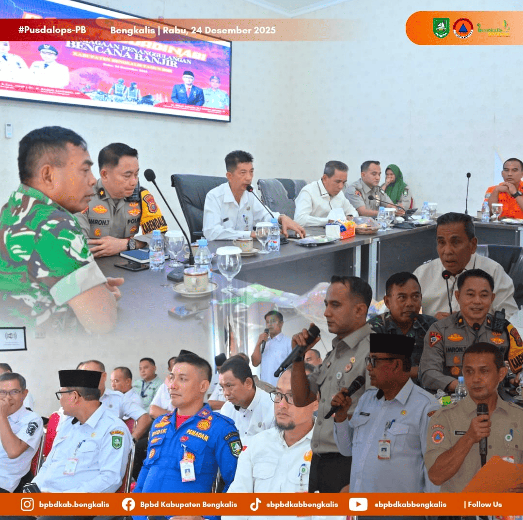 Bengkalis — Pemerintah Kabupaten Bengkalis menggelar Rapat Koordinasi Penanggulangan Bencana Hidrometeorologi Tahun 2025 se.